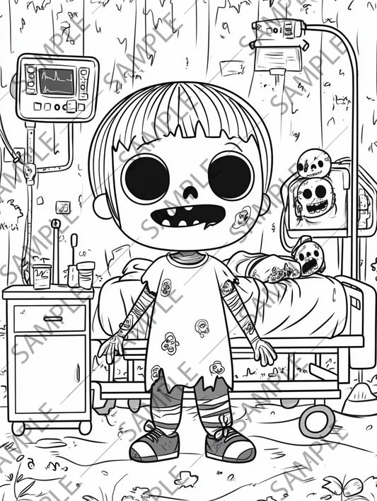 FREE Halloween Zombie Cartoon Coloring Pages – Spooky & Fun Printable Activity for Kids | Instant Digital Download